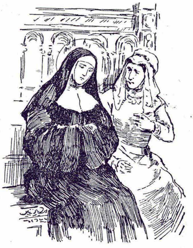 “La primera que se siente junto a ti, es mi elegida” [1], grabado publicado en el libro “Vida de Santa Gertrudis Virgen”, autor anónimo, Apostolado de la Prensa, Madrid, 1913.